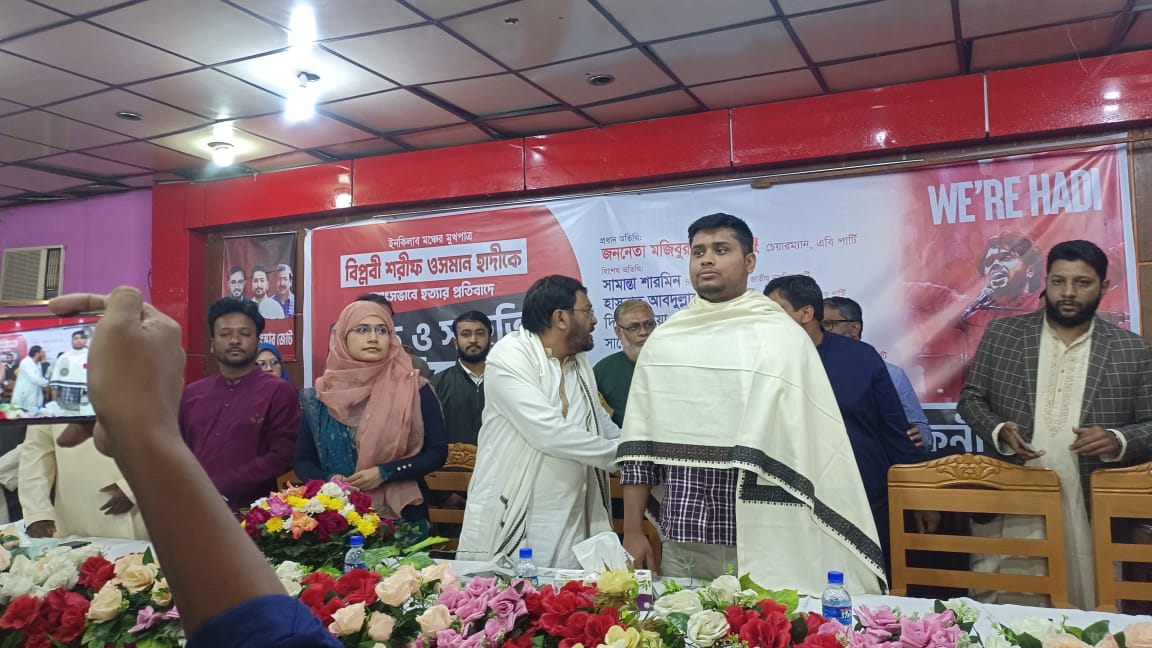 সমাবেশের অন্যতম বিশেষ অতিথি এনসিপি’র দক্ষিণাঞ্চলের মূখ্য সংগঠক হাসনাত আব্দুল্লাহ বলেন, 'জুলাই গণঅভ্যুত্থানের সময় যারা আমাদের হত্যা করতে চেয়েছিল তারা এখনও আমাদের খুন করতে চায়, বাংলাদেশের রাজনীতি বদলে দেয়ার জন্য আমরা যে সংস্কারের দাবি তুলেছি জীবন গেলেও আমরা তা থেকে পিছপা হবোনা।' তিনি বলেন, যারা শহিদ ওসমান হাদিকে গিনিপিগ বলে, তার নামটাও ঠিকমতো উচ্চারণ করতে পারে না তাদের এই প্রজন্ম প্রত্যখ্যান করবে। তিনি বলেন, নিয়ন্ত্রিত লটারির মাধ্যমে যাদের ডিসি এসপি বানানো হয়েছে তারা অনেকে একটি দলের পা চাটা শুরু করেছে। কোন দলের দালালি করলে বেনজির-হারুনদের মত পালাতে হবে বলে সতর্ক করে দেন তিনি। হাসনাত বলেন, এখনো হাদি হত্যাকাণ্ডের বিচারের কোন লক্ষ্মণ দেখা যাচ্ছে না, এটি অশনি সংকেত। প্রশাসন নিরপেক্ষ আচরণ না করলে আবারো তরুন প্রজন্মের মুখোমুখি হতে বলে হুশিয়ারি উচ্চারণ করেন তিনি।